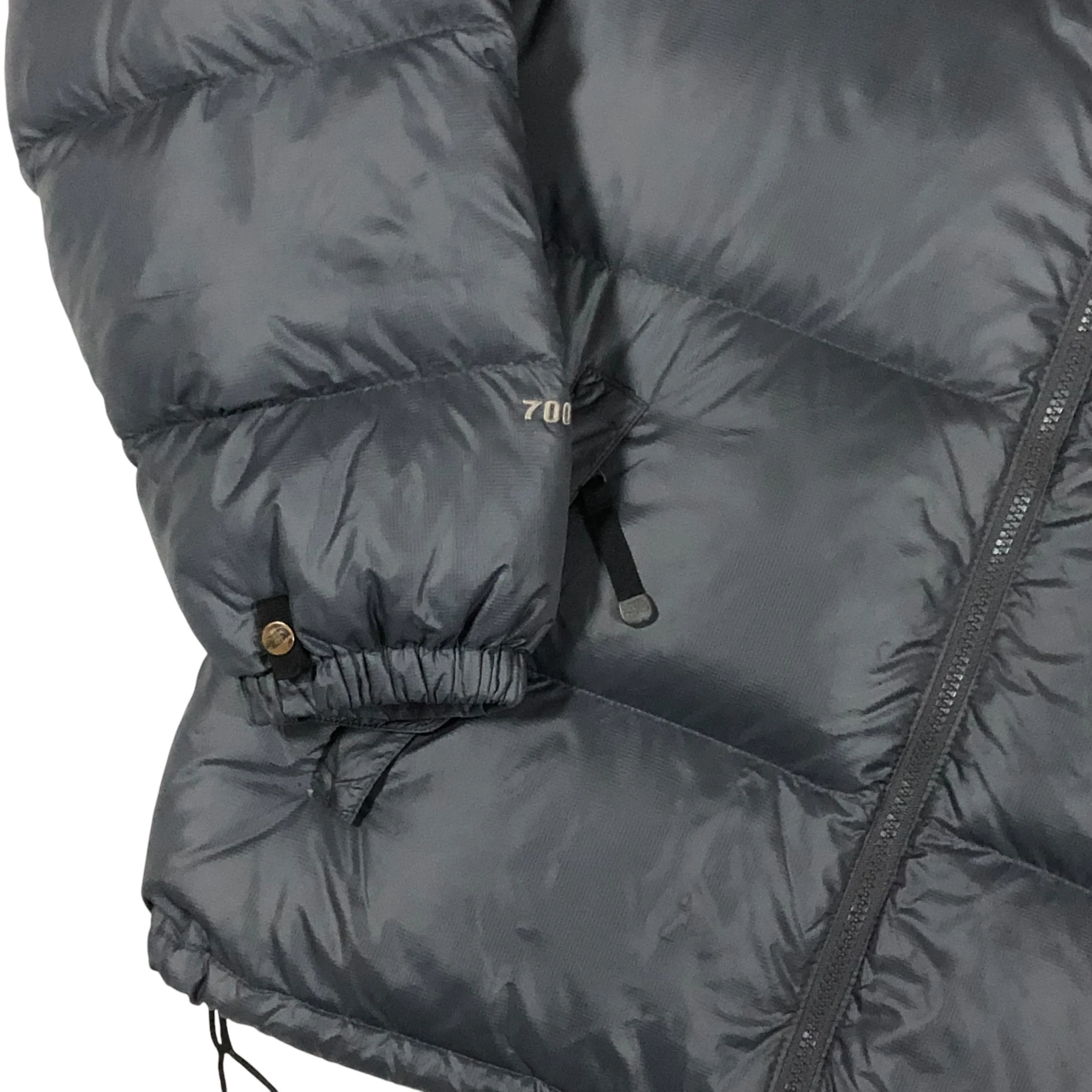 Vintage The North Face 1996 Nuptse Puffer Jacket in a silver/ grey & black colour way. 700 down fill with embroidered logos and packable into concealed stow pouch.